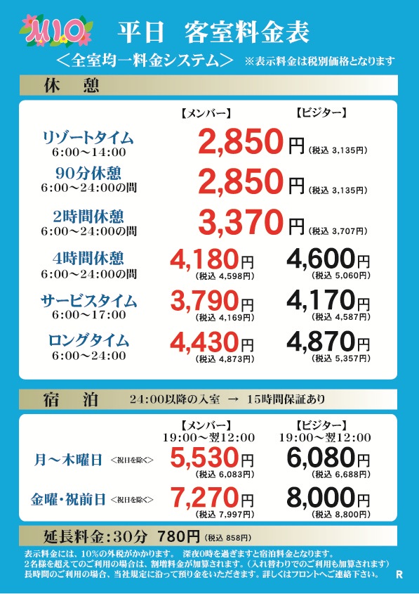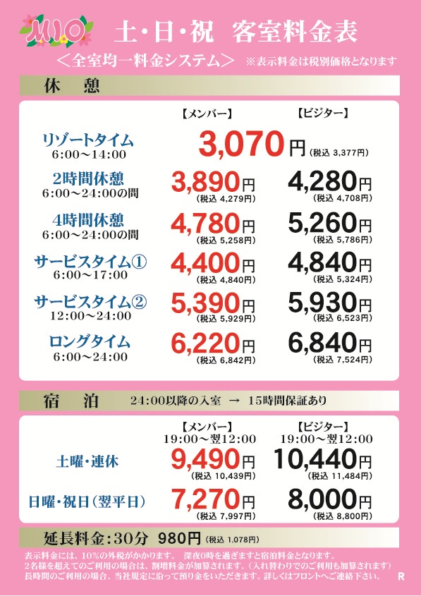 特別期間(年末年始・GW・夏季)は、下記料金とは別となります。